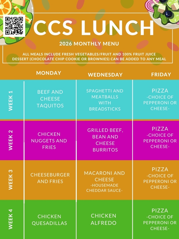 For the 2025-2026 school year we are continuing our partnership with Boma Foods, offering lunch options Monday-Friday for students from Kindergarten through high school. Boma Foods is located in our cafeteria kitchen and makes all of our delicious lunches on-site.
