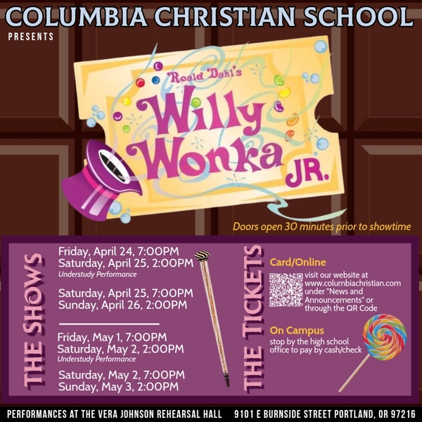 Make plans to support our talented students by attending our spring musical production: Willy Wonka Jr.