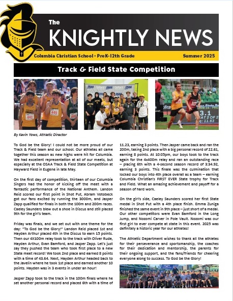 The Knightly News is a publication distributed to Columbia Christian's community of supporters. Click below to read recent issues.